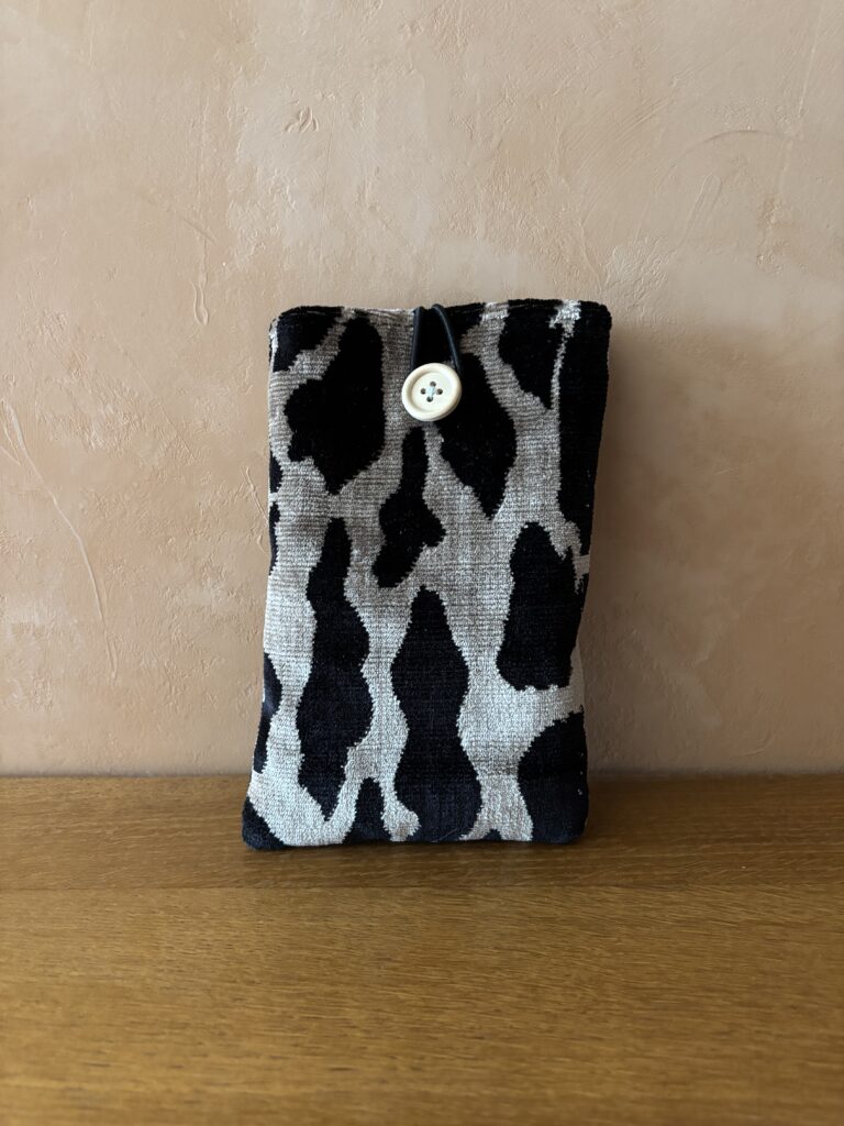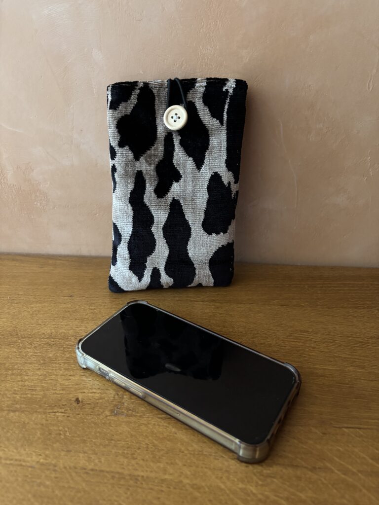 Cet étui de téléphone en velours ou tissu peluche offre une protection douce et efficace. Doublé d’un coton uni, rembourré de ouate et doté d’une fermeture par élastique et bouton, il allie praticité et élégance.